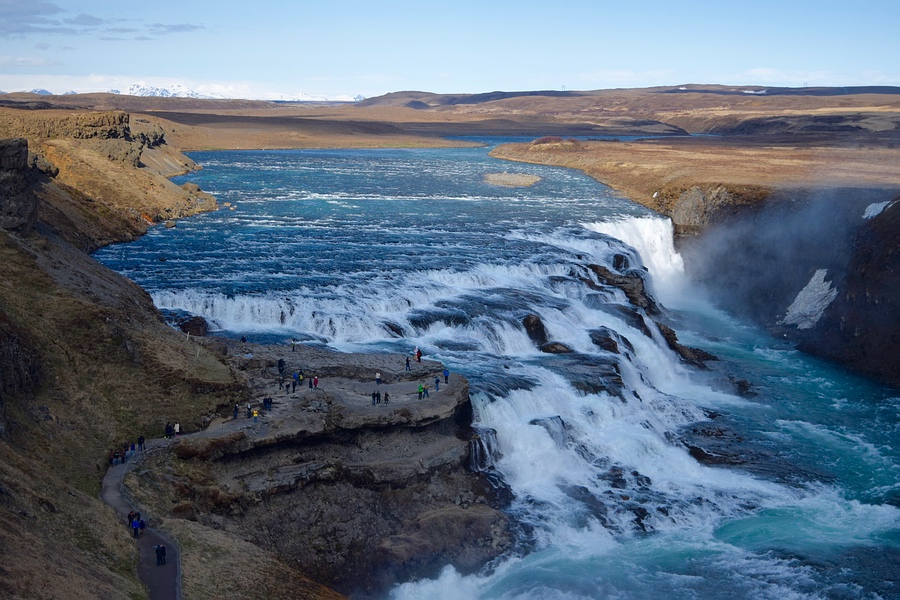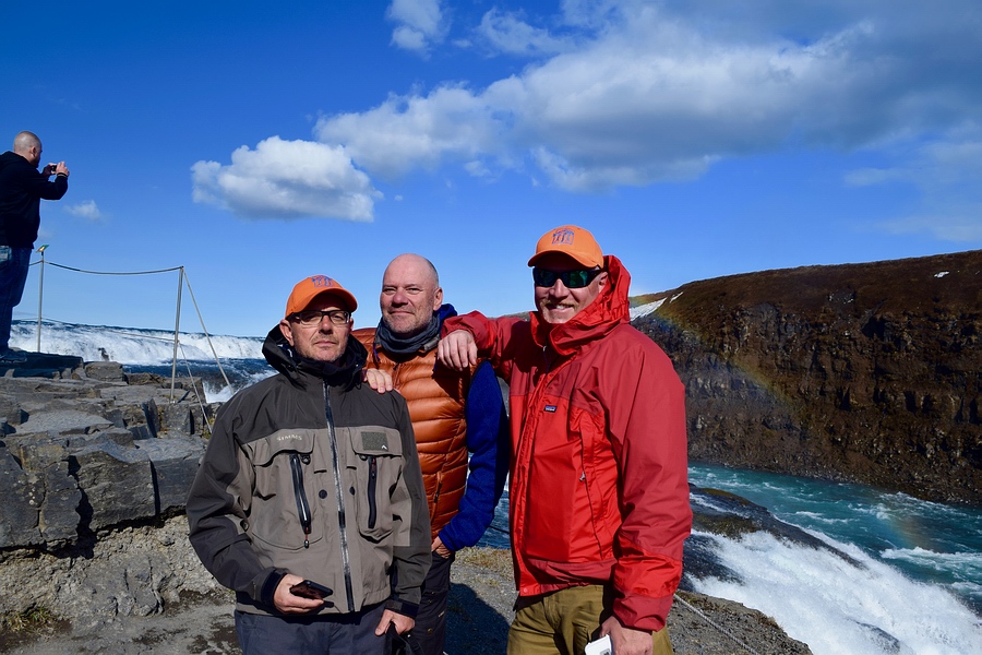 Dies war dann ein gelungener Abschluss der Fischerei. Der letzte Tag in Island war dem reinen Tourismus gewidmet: Geysir und Gullfoss liegen eine kurze Autofahrt vom Thingvellir-See entfernt und bilden mit diesem den „Golden Circle“, unumgänglich für Island-Touristen: wenn man schon da ist, muss man es auch besichtigen! Besonders die Fallstufen des Gullfoss-Wasserfalls sind landschaftlich beeindruckend und machen die Anfahrt absolut wert! |