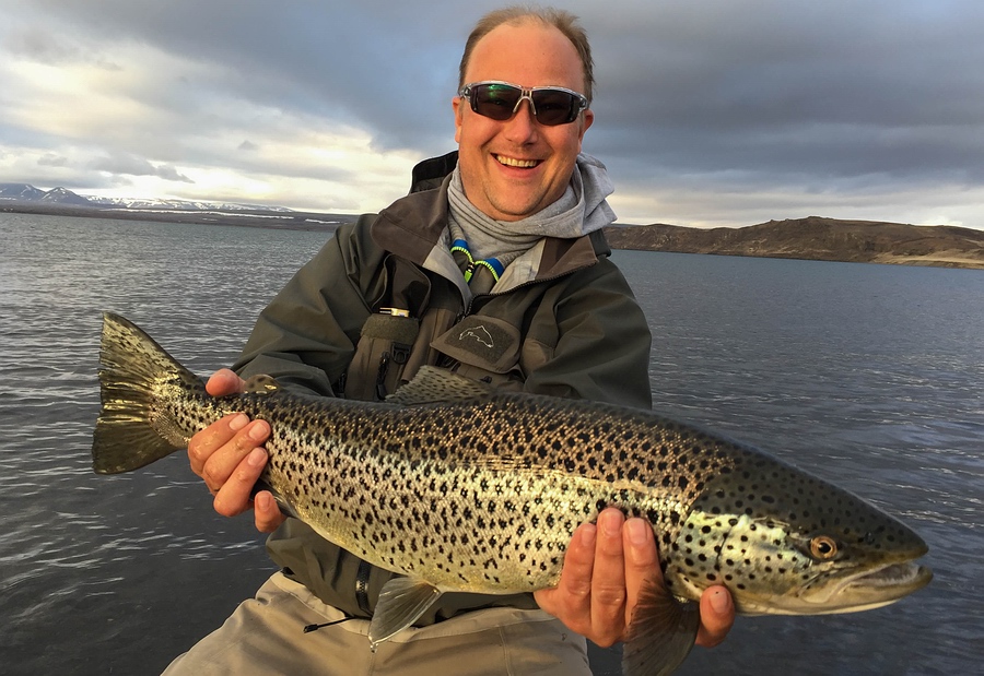Fazit der Reise: Schwierige Bedingungen meistert man an besten im Team. Die Stimmung war immer gut bis ausgelassen, die Tage lang und Nächte kurz. Viele Fische wird man am Thingvallavatn kaum fangen (mit Hinblick auf unsere Reise an den Strobel-See in Argentinien), dafür aber bestimmt die größten Bachforellen weltweit! Einem Bekannten, der in Reykjavik lebt und sich die besten Tage am See aussuchen kann, gelang am Tag nach unserer Abreise der Fang einer Forelle von 103 cm Gesamtlänge und unser polnischer Freund Mat kann einen Fisch von über 14 kg (!) vorweisen, gefangen an Fliegengerät im Frühling 2015!!! Auf die Aktivität der Fische (oder das Fehlen hiervon) angesprochen, erzählte uns Mat, dass 2016 ein „komisches“ Jahr war, hier ein wenig, da en wenig, da sei die Fischerei im Vorjahr wesentlich besser gewesen, mit mehr gefangenen Fischen und auch im Durchschnitt etwas größer. In den Fangbüchern an Kristjan’s Thingvellir-Beats vom April und Mai 2016 fanden sich aber dennoch etliche Fische in Größen von notierten Mittsechzigern bis zu mehreren tollen Mittneunzigern, aber wiederum nicht an durchgehenden Fangtagen, sei es, weil weniger gefischt wurde, oder wie Mat es behauptete, die Aktivität der Fische sporadischer war. |