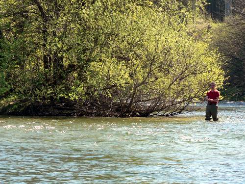Besucht haben diesen Fluss eben viele große Namen, die vielen bekannt sind und darum wird über diesen Fluss auch immer mehr als über andere geredet und geschrieben werden. Man denkt es sich schon bei der ersten Brücke, von der man in die Fluten schaut (egal von welcher), dass das ein mächtiger Fluss ist, der einen Fliegenfischer unter Umständen vor werferische Probleme stellen kann, überhaupt einen Fisch zu erreichen. |