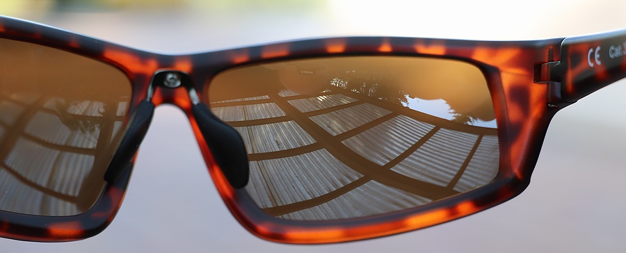 | Die TRAUN RIVER Polarisationsbrille Guide View ist sehr leicht und kommt einen dunkel meliorierten, tortoise-farbenen Kunststoffrahmen. Die Bügelenden bestehen aus rutschfesten Gummielementen, die besten Halt und Tragekomfort garantieren. Die gummierten Nasenpads auf Metallrahmen können angepasst werden. Die großen braunen Linsen aus Polycarbonat unterstützen die Leichtigkeit dieses Modells und sorgen neben einem guten Schutz für für ein blendfreies Sehen. Die Verarbeitung ist akkurat. Gewicht: 24 Gramm. Geliefert wird die Guide View inkl. Microfaserschutzbeutel und Karton. Kostenpunkt: 39,90€. |