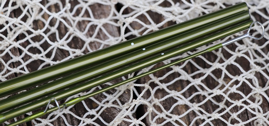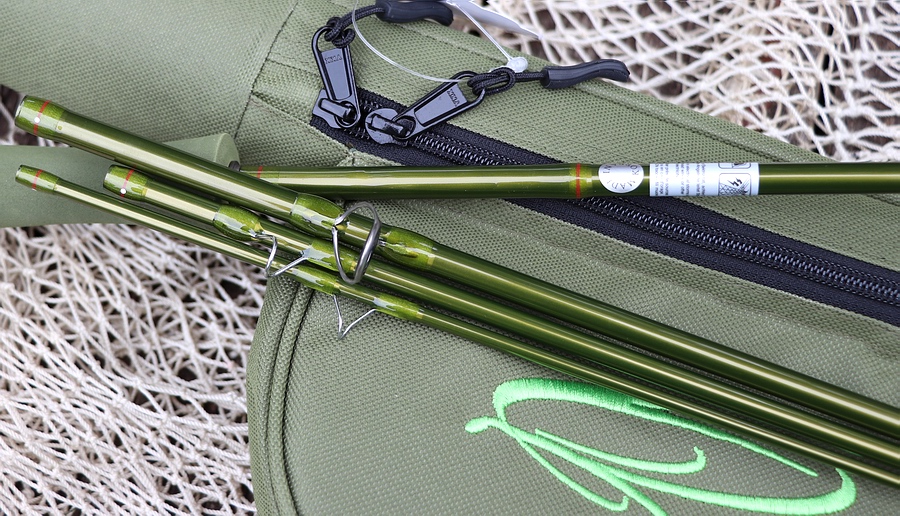 Teilung und Maße: Testmodell: TRAUN RIVER PIKE - 9'0" #8: Vierteilige Fliegenrute, Länge 9'0" (zusammengesteckt und nachgemessen 273 cm), vier gleichlange* Teile a. 72 cm (*Handteil 1cm länger). Das Gewicht der Rute beträgt leichte 114 Gramm. Auf der Rute angegebene Schnurklasse: #8. Blankdurchmesser über dem Griff: 9,5 mm, Blankdurchmesser an der Rutenspitze: 1,8 mm, Länge Rutenrohr: 77 cm, Gewicht Rutenrohr: 587 Gramm. Ausstattung: Glanzlackierter, dunkelolivgrüner Blank aus Kohlefaser. Die Verbindungen der Einzelteile wurden als exakt passende Überschubverbindungen mit Punktmarkierungen ausgeführt, die oberen Enden der Ruteneinzelteile wurden gegen das Eindringen von Schmutz und Wasser abgedichtet. |