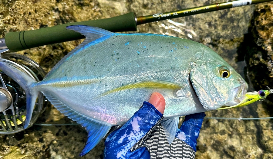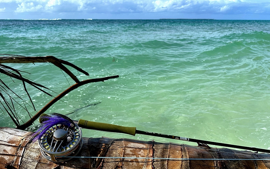 Zunächst kam sie bestückt mit einer Rio GT #10 Schnur als Streamerrute für kleinere GT und Bluefin Trevally, wie auch Permit und Bumpie mit an den Strand und auf das Riff und konnte sich hier auch sehr gut bewähren. |