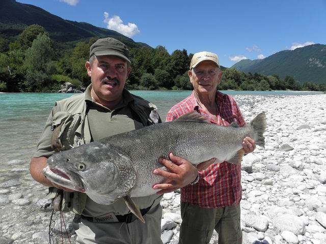 Diese unglaubliche Marmorata - Forelle wurde am 19.07.2009 von einem lokalen Fliegenfischer mit einem Streamer in der slowenischen Soca, Nähe Tolmin gefangen. Die Rekord-Daten: Länge: 120 cm, Gewicht: 22,5 kg !!! | Fotoeinsendung: Lucijan Rejec |