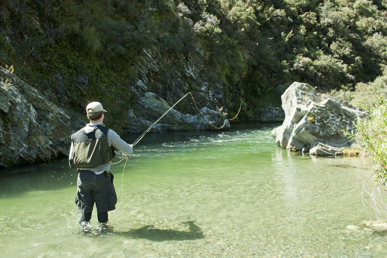 Fliegenfischen in Neuseeland (10/17): Thorben Stegmann fischt den Dunstan Creek in der Nähe von Alexandra, Otago, NZ | Foto & Copyright: Gebhard Krewitt