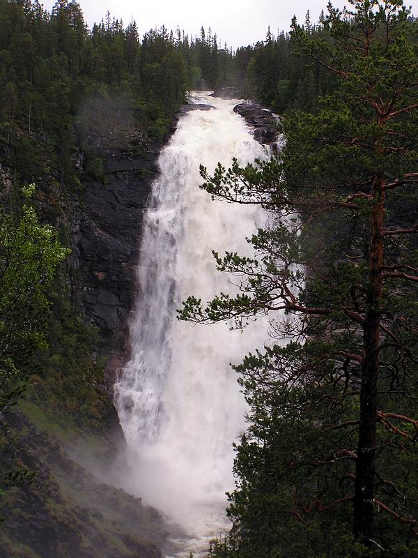Norwegen, Sommer 2011 (1/4): Der größte Wasserfall Tröndelags - Henfallet (gesprochen Hen-Fall-U) am Flüsschen Hena. Wasser war ja im regenreichsten Juni Norwegens seit 100 Jahren genug vorhanden. Echt imposant und einen Abstecher wert. Foto & Copyright: Andreas Sperl |