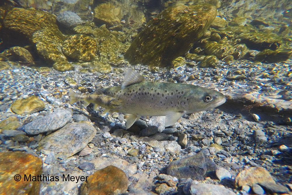 (D-37) | Bach- und Seeforelle auf der Laichgrube | Foto & Copyright: Matthias Meyer