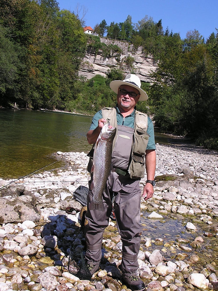 (F-42) | Walter mit guter Regenbogenforelle. | Foto & Copyright: Andreas Sperl
