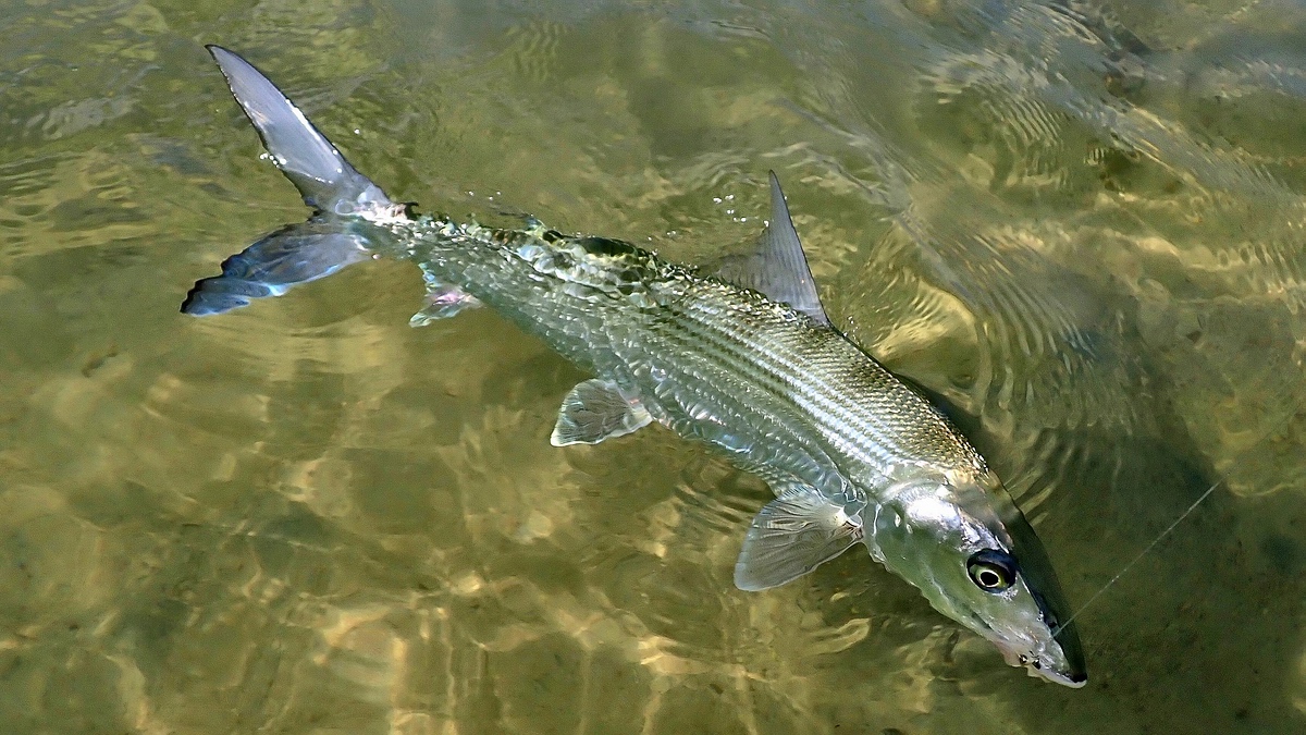 (G-20) | "Seychellen Light Tackle Flyfishing: ein hübscher Bonefish hat den Charlie genommen" | (