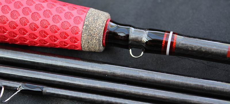 Teilung und Maße: Vierteilige Fliegenrute, Länge 9'0" (zusammengesteckt und nachgemessen 274 cm), vier nahezu gleichlange Teile um 71,5 cm (Handteil 1,5 cm länger). Das Gewicht der Rute beträgt 93 Gramm. Blankdurchmesser über dem Griff: 8,5 mm, Blankdurchmesser an der Rutenspitze: 1,8 mm. Länge Transportrohr: 78,5 cm, Gewicht Transportrohr (leer): 450 Gramm. Ausstattung: Dunkelgrauer, perleffekt glanzlackierter Blank aus hoch modulierter Kohlefaser in Redington "X-Wrap"-Technologie. Die Verbindungen der Einzelteile wurden als exakt passende Überschubverbindungen ausgeführt, die oberen Enden der Ruteneinzelteile wurden gegen das Eindringen von Schmutz und Wasser abgedichtet. Beringung: Handteil ohne Beringung, mit einer feststehenden Fliegeneinhängeöse über dem Griff und in Rollenflucht, zweites Teil mit einem Dreibein-Leitring mit Titan-Oxyd-Inlay und einem Schlagenring, drittes Teil mit drei Schlangenringen, Spitzenteil mit fünf Schlangenringen und dem Spitzenring. Alle Ringe besitzen der Schnurklasse angemessene Durchmesser und Materialstärken, sie kommen in Hardchrome, sind salzwasserfest und weisen die nötigen Abstufungen auf. |
