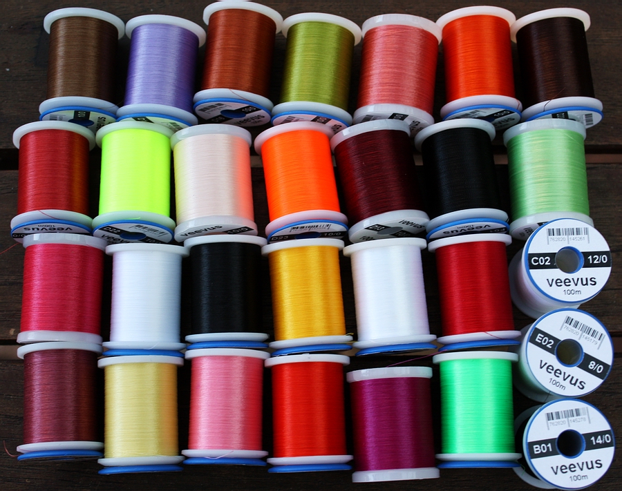also bis zu 16/0 hinunter! Veevus Bindegarn ist in den Stärken 6/0
