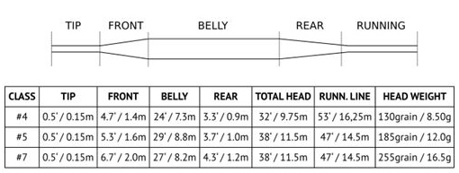 als schwimmende WF-Leine in drei Schnurklassen: #4, #5 und #7 |