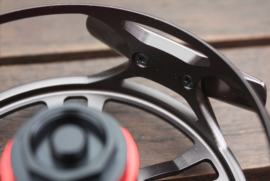 Die Vosso Fliegenrollen besitzen ein sehr modern anmutendes Mid Arbor Design, sie kommen in ansprechender, fast filigran wirkender Optik und sind maximal ventiliert. Für härteste Einsatzzwecke im Süß- und Salzwasser konzipiert, kommen die Vosso in sehr hoher Fertigungsgüte, mit vollständig geschlossenen Rollenrahmen, immenser Stabilität bei geringem Materialeinsatz und starken, voll gekapselten Mehrfach-Scheibenbremsen. Die Rollen wurden komplett aus T-6061 Flugzeugaluminium gefräst / gedreht und die Oberflächen wurden reflexionsarm in einer Hard Black Nickel "Bead Blasted" Stealth anodisiert. Im farbigen Kontrast dazu stehen die dunkelroten Bremsgehäuse. Die beidseitig komplett durch Lochreihen belüfteten Spulen laufen in geschlossenen Rollenrahmen, unter optimaler Platzausnutzung. Die V-förmig geformten Spulenböden sind durch die doppelreihige, durchgehende Langlochung ebenfalls maximal ventiliert. Die Gehäuserückseiten und Spulenkerne werden durch fünf schmale Doppelstege gebildet, sind ansonsten offen gestaltet. An den Rollenrahmen in 4-Steg Ausführung befinden sich hinten jeweils ein breiterer Steg mit Durchbrüchen für den zweifach von Innen angeschraubten Rollenfuß und vorne ein schmalerer Steg ebenfalls mit seitlichen Durchbrüchen für die Schnurführung. Daneben finden sich oben und unten noch jeweils ein weiterer, kleiner Steg mit Durchbrüchen. Der Rollenfuß wurde etwas versenkt eingelassen: beim Werfen von Rollen mit großem Durchmesser ist oft eine deutliche Hebelwirkung zu spüren, was die Balance deutlich beeinflusst. Um dem entgegen zu wirken, hat Guideline den Rollenfuß eingelassen, damit die Rolle näher an der Rute sitzt. Am vorderen Steg wurde zudem ein Tippet-Halter integriert, für das Vorfach, wenn einmal keine Fliege angeknüpft ist. Durch die Rollenbauweise mit vollständig geschlossenen Rollenkäfigen ist ein Durchrutschen von Vorfach oder Schnur etc. kein Thema. Die Leerrollen zeigen sich, am Rollenfuß gehalten optimal und neigungsfrei ausbalanciert. Auf den Spulenvorderseiten befindet sich jeweils eine passend groß dimensionierte und ergonomisch geformte Kurbel aus schwarzem Kunststoff, welche leichtgängig und ohne störendes Spiel arbeitet. Ihr gegenüber wurde ein rundes Kontergewicht platziert, welches für eine gute Ausbalancierung der Spulen sorgt. Im Praxisbetrieb zeigten unsere drei Testmodelle einen sauber ausgewuchteten Rundlauf ohne störende Toleranzen und ohne Schlag, auch nicht bei hohen Abzugsdrehzahlen. Die Rollen wurden absolut präzise und tadellos verarbeitet, es gibt keinerlei erkennbare Mängel. Alle Kanten an relevanten Teilen wurden entschärft und abgerundet. Die Spulen haben weder Spiel auf der Achse, noch kippeln sie. Alle Zwischenräume und Abstände wurden sehr gering gehalten, scharfe Ecken und Kanten sind an den Rollen nicht zu finden. |
