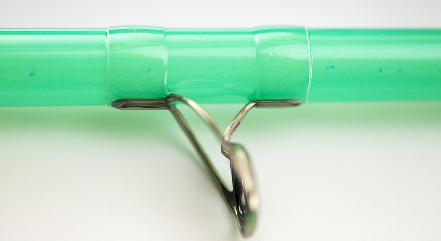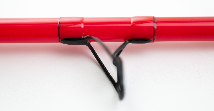 | Wiederum vierteilig in 8 Fuß und 6 Zoll Länge (gemessene 261 cm mit 68,5 cm Transportlänge), und bei 132 Gramm Rutengewicht für Schnurklasse 7 ausgelegt, tanzt dieser Blank aus dem Programm. Die Konizität ist beeindruckend und die Aktion der Rute dementsprechend. Wir mussten etwas tiefer im Schnurfundus kramen, bis eine Schnur gefunden war, die perfekt passte. |