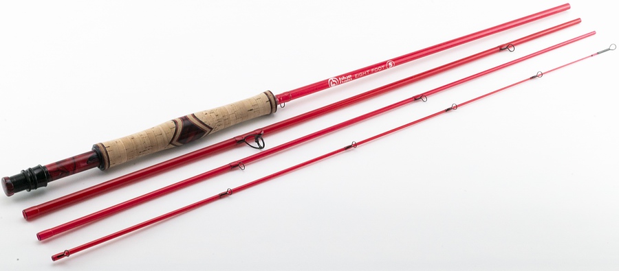 Die Eight 5 Slow ist dann etwas länger und für Schnurklasse 5 ausgelegt, wie die gesamte Rutenserie ist sie vierteilig und kommt in 8 Fuß Länge (gemessene 245,5 cm, Packmaß 64,5 cm), das Rutengewicht beträgt 111 Gramm. |