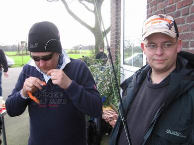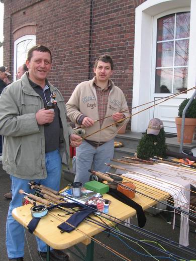 Etwa 25 mehr oder weniger „verrückte“ Fliegenfischer verabredeten sich über’s Fliegenfischer- Forum und machten sich auf den Weg nach Waltrop in das Ruhrgebiet. Eingeladen zu diesem Treffen hatte Marc Rädisch, im „Board“ auch unter dem Namen Marc/Ruhrpott bekannt. Fachgesimpel in großer Runde => |