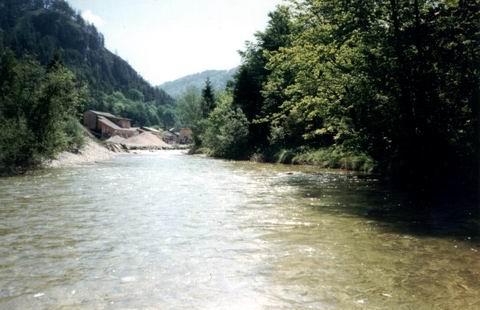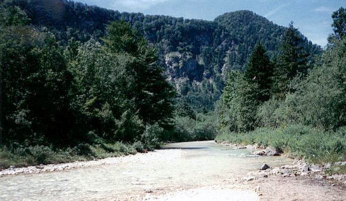 | Worauf man allerdings achten sollte, ist eine weiche Präsentation, ein lautes Aufklatschen der Schnur am Wasser, läßt dessen Bewohner für längere Zeit beleidigt zum Grund sinken. Auch ist meist genug Raum für einen Rückschwung vorhanden, da sich im weitläufigen Kiesbett, das sich nach den Frühjahrshochwässern jedes Jahr völlig neu präsentiert, nicht besonders viel Vegetation halten kann. | ![]() |