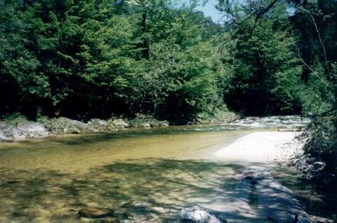 erwähnt, bahnt sich der Fluß/Bach seinen Weg durch ein fast