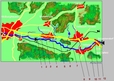 Fließrichtung von Veilsdorf nach Hildburghausen, ca. 7 km