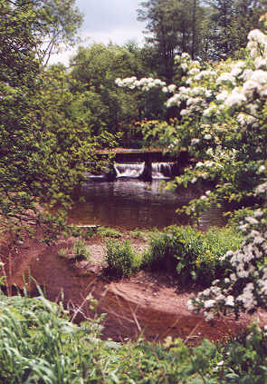 ist meistens mit Steinen eingefasst; ein kleines Wehr, fast im Ort, finden