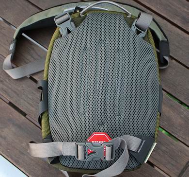 zusätzlich ein verstellbarer Bauch/Hüft-Gurt mit Schnalle.