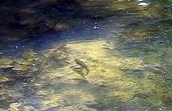 | Obwohl der Wasserstand in diesem Abschnitt oft niedrig ist, stehen gerade hier in großen wannenartigen Vertiefungen ganze Schwärme von Äschen, vereinzelt sind Hasel, Döbel und Forellen darunter. Die Seichtigkeit des Wassers und seine damit gegebene Klarheit erfordern natürlich ein ganz behutsames Anpirschen und -werfen. |