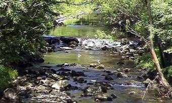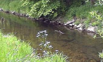 | Im Hauptteil dagegen, der tief und schnell, umstanden von Erlenbäumen und -gebüsch durch bunte Blumenwiesen zieht, verraten sich die Flossenträger nur durch mehr oder weniger häufige Ringe an der Oberfläche. Hier dürfte das Fischen in den frühen Morgenstunden und am Abend den besten Erfolg versprechen. Eine weitere beliebte und deshalb auch oft besuchte Stelle befindet sich direkt unterhalb des sich anschließenden Wehres. |