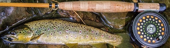 | Wie ich vorher bereits eingeräumt habe, kann ich nicht behaupten, dass ich dieses Gewässer besonders erfolgreich befischt hätte - mein absolutes Highlight war eine Forelle so an die 40cm. Daher möchte ich hier jetzt auch auf Belehrungen zu Technik, Taktik oder Fliegen verzichten, sondern nur kurz sagen, dass die Größe des Flüsschens für eine Rute zwischen 7ft und 8ft ideal ist. Weitwurfakrobatik ist sicher nicht gefragt und eine Schwimmschnur wird wohl reichen. Wie man einen solchen Bach befischt, wisst Ihr ohnehin aus vielen Artikeln und Diskussionen im FF-Forum, die von berufeneren Spezialisten verfasst wurden. |