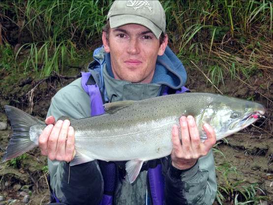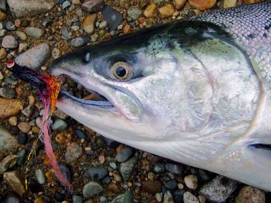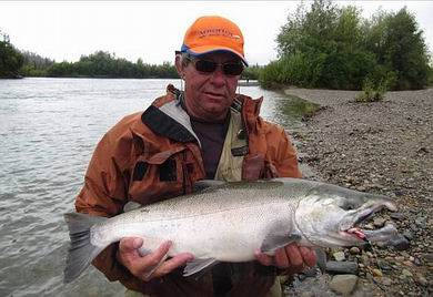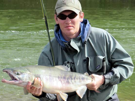 Die gut ausgerüsteten Fliegenfischer schafften schon 10 - 20 frische, silberblanke Lachse am Tag. Und das war