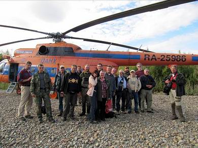 Bei Ankunft in der Lodge, nach einem herrlichen Heliflug über die in der Sonne badende Taiga, oft durchkreuzt durch silberne Flüsse und viele Seen, wurden wir ganz herzlich begrüßt von Sacha und Viktor, die wir schon vor fast 20 Jahren beim ersten Yamabesuch kennenlernten. |