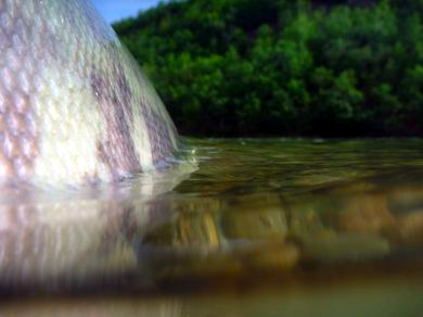 alle Lachse suchen eine Aufstiegstiefe von 70-90 cm, seitlich des Hauptstromes