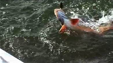 Unsere großen, silbernen, mit je zwei roten Glasaugen bestückten Löffelblinker - „Ruby-Eye“ genannt - zogen unweit des Ufers knapp über Grund ihre Bahnen. Es dauerte auch nicht lange, bis sich unter vehementem Rucken und Ziehen in Rute und Schnur der erste Biss ankündigte. Ein prächtiger, knapp 80 cm langer Seesaibling war unsere erste Beute, bald gefolgt von anderen, wenn auch nicht mehr ganz so großen Exemplaren. Dazu muss gesagt werden, dass die ganz großen, die wahrhaft Kapitalen dieser Gattung jetzt bereits die kühleren Tiefen des Sees aufgesucht hatten, nachdem sie im Frühjahr kurz nach der Eisschmelze auf Nahrungssuche auch im Uferbereich zu fangen gewesen waren. Das aber konnte unsere Freude an den meist prächtig gefärbten, dabei lebhaft gezeichneten Fischen in keinster Weise schmälern. |