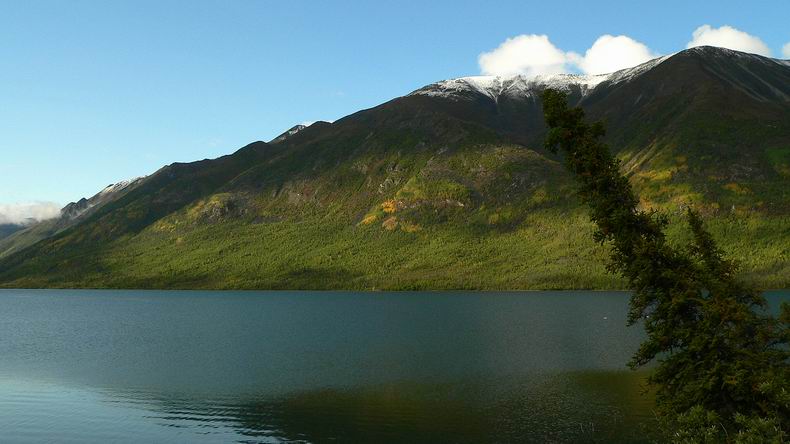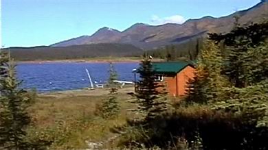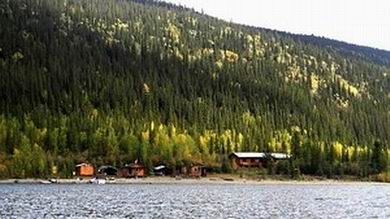Die Lodge liegt gut 50 km vom Alaskay Higway - und damit von der Anbindung an die Außenwelt entfernt - völlig abgelegen am nordöstlichen Ende des Kluane Lakes, eingebettet in die bis zu 2000m hohen Berge der Ruby Range. „Rubin-Gebirgskette“ wohl deshalb, weil ihre Gipfel in der Morgen- und Abendsonne in rölichem Glanz erstrahlen. |