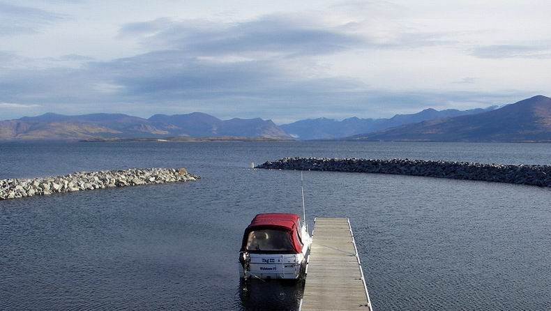 Hier wartete das lodgeeigene, komfortable Motorboot, das mich in einer knapp zweistündigen Fahrt über den See bis ans Ende des langen, fjordartigen Talbot Arms, vorbei an einer atemberaubenden Gebirgslandschaft, hin zur Ruby Range Lodge brachte. |