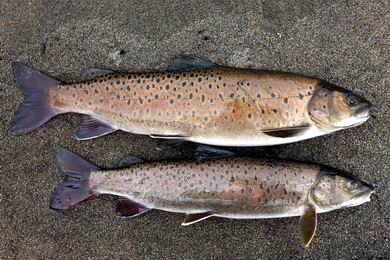 zwei kleine Taimen - mit prächtig rot gefärbter