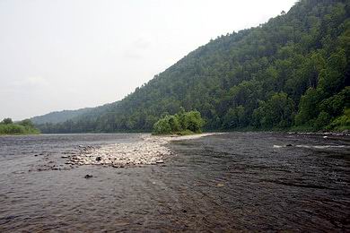 Der Anyui ist ein rechtsufriger Zubringer des Amur, 793 km stromauf der Mündung des Amur in die Meerenge zwischen dem Japanischen und Ochotskischen Meer. Der mittlere Abfluss von 225 m pro Sekunde wird vor allem durch sommerliche Regenereignisse geprägt. Im Oberlauf beträgt die Flussbreite etwa 60 bis 90 m, das Gefälle liegt bei 2,1 ‰. Die Gewässerstruktur und Talform erinnert mich etwas an die mittlere Mur oder Salzach. Im Mittellauf reduziert sich das Gefälle auf 1,5 ‰, so dass am Ende der von mir befahrenen Strecke der Übergang Äschenregion (Hyporhithral) – Barbenregion (Epipotamal) anzusiedeln wäre. Anhand des Fischbestands bestätigt sich diese Einstufung grob. |