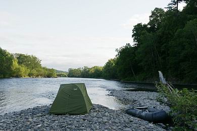 einen flachen Zeltplatz und das Feuerholz hat bereits der Fluss gesorgt.