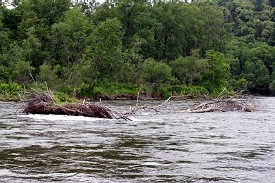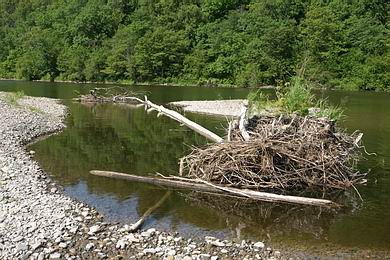 Bleiben Bäume auf Schotterbänken liegen, so werden diese um die