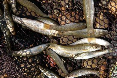 | Wo Totholz die Schotterbank zerfurcht, leben massenhaft | Elritzen. |