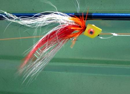 9-10ft Einhandrute der Schnurklassen 8/9, ähnlich wie für Lachs- und Salzwasserfischerei. Rolle mit guter Bremse und mind. 50 m. Backing. Schwimmende Keulenschnur für Popperfliegen (Bass Taper), Intermediate oder leicht sinkende plus normale Sinktip-Schnur. Nicht schwerer als Teeny 300, der Agua Boa ist nicht sehr tief, die Pfauenbarsche jagen häufig im untiefen Wasser. Am besten hat man im Boot 2 Ruten bereit, die eine mit der Trockenschnur zum Popper oder leichtem Streamerfischen, die andere mit der Sinkschnur und schwerem Streamer. Oben: Popperfliege
