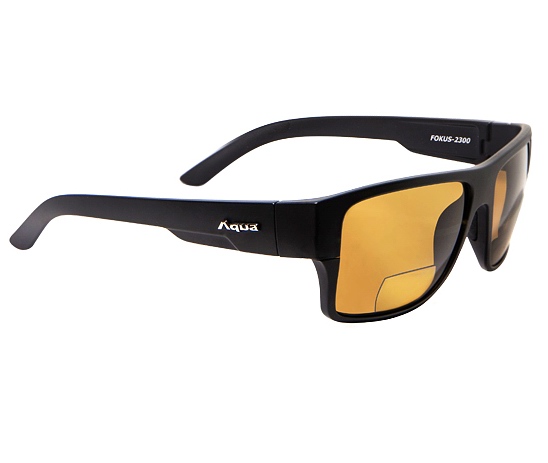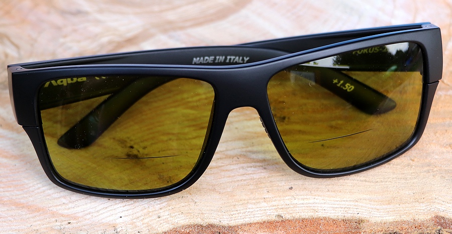Das hier im Test befindliche Modell "Aqua Fokus 2300 Polarview / PCR, Yellow Polarized Lens + 1,5d" nimmt eine Sonderstellung ein, denn es vereint eine preisgünstige Pol.-Brille mit CR39 BiFokal-Gläsern, in deren unteren Bereichen beidseitig eine praktische Vergrößerungsfunktion - sprich Fliegenanbindehilfe - eingearbeitet wurde! |
