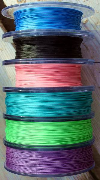 Besonders ins Auge fallen natürlich die lustigen sechs Farben, in welchen das adh-Backing zu haben ist: blau, lila, grassgrün, türkis, schwarz und pattegrisn/schweinchenrosa. Praxisgerecht ist die Wahlmöglichkeit der Tragkraft in 20lbs, 30lbs und 50lbs. Mit einem Grundpreis in Höhe von 9 Cent pro Meter bewegt sich dieser im sehr günstigen Rahmen. adh liefert das Backing ganz nach Kundenwünschen in jeder beliebigen, zusammenhängenden Länge. Bezug: