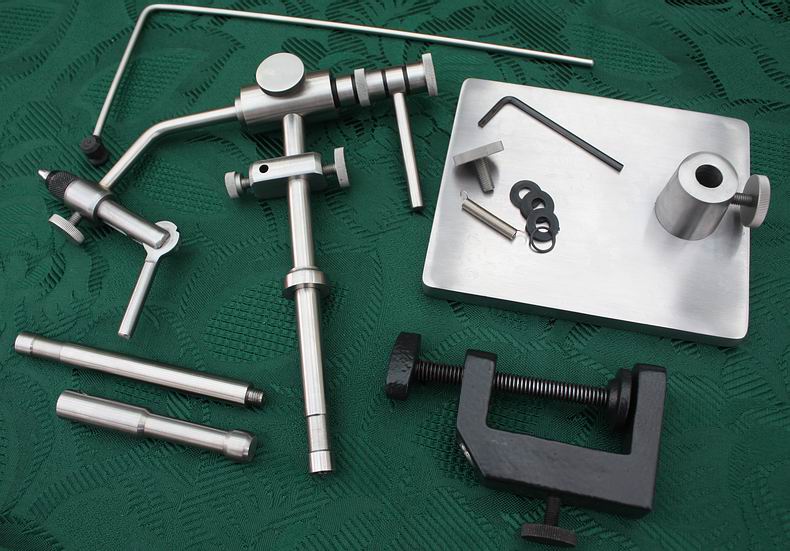 - Präzisionsfertigung aus bestem, deutschen Edelstahl, Farbe: Silber - massive Bodenplatte aus Edelstahl (12,4 x 10 x 0,9 cm, Gewicht 1015 Gramm) mit 4 flachen Gummifüßen unten - zusätzliche Tisch-Klemme (C-Klemme) - Gesamtgewicht Bindestock mit allen Anbauteilen + Bodenplatte: 1542 Gramm - höhenverstellbarer, fein justierbarer Bindekopf für alle Hakengrößen, mit bewährtem Schnellverschluss - zwei Kugellager für eine perfekte, ausbalancierte Rotation - diverse Fixierungsmöglichkeiten, sowohl über die Feststellschrauben aus Metall als auch über die stufenlose, widerstandsregulierende Rändelverschraubung - aufschraubbare Hauptachsenverlängerung - höhen- und weitenverstellbarer Bobbinhanger - beliebig positionierbare Materialfeder - Rotationskurbel aus Edelstahl - Ersatzteilset und Sechskantschlüssel |