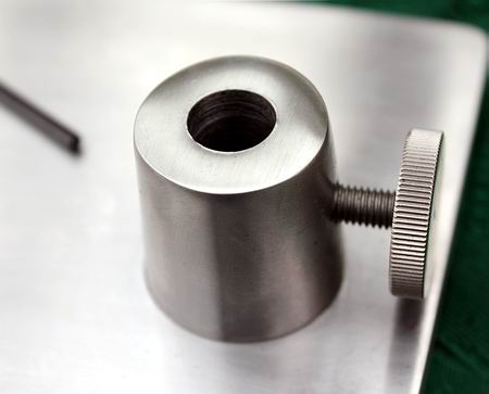 | Wenn man sich einmal durch die Einstellungsmöglichkeiten des Piranha durchprobiert hat, funktioniert die Bedienung schnell und einfach. Zwei Kugellager und eine hohe Fertigungspräzision gewährleisten eine absolut tadellose Rotation und einen toleranz- und wackelfreien Betrieb. Der nach unten abgewinkelte Führungsring des Arbeitsarmes nimmt den Bindekopf auf, der auf knapp 4,3 cm verschiebbar ist und auch Eigenrotieren kann, wenn die Rändelschraube soweit herausgedreht wird, dass diese die Führungs-Nut verlässt. Ganz nach Belieben kann zu guter Letzt der eigentliche, fein justierbare Kopf und dessen Hakenaufnahmemöglichkeiten eingestellt werden - hierfür sorgt die Kombination aus Rändelmutter vorn und Hebel (mit Einraststufe) hinten, also der bewährte Schnellverschluss. | ![]() |