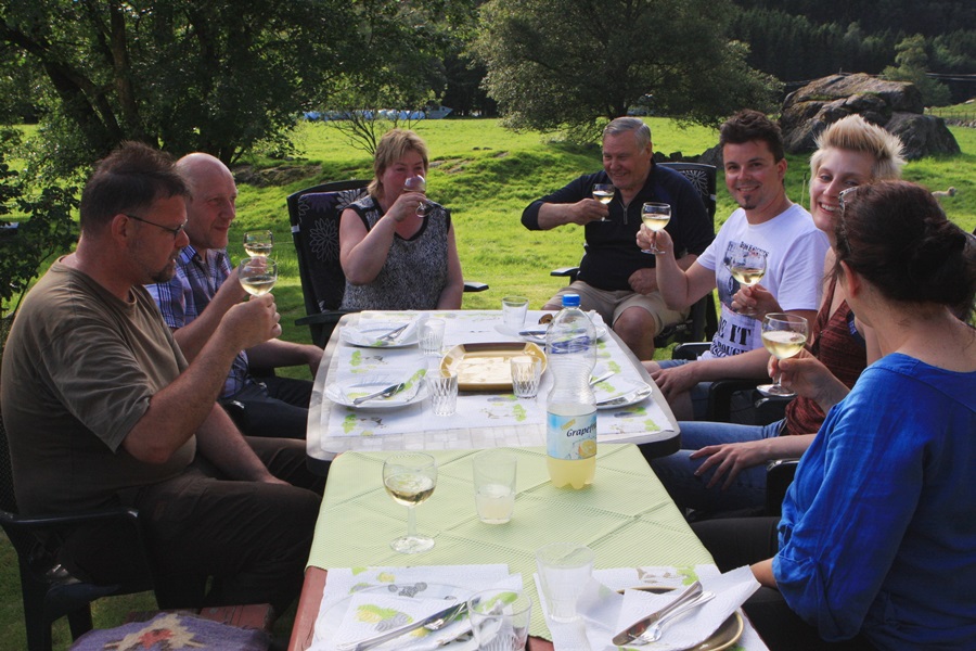 Abend – wir stoßen zum Abschied mit unseren Vermietern an