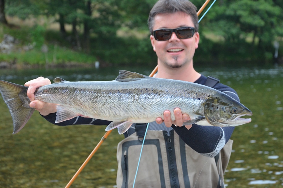 fingen wir überwiegend Grilse zwischen 1 und 2 kg. Nur 3 Fische hatten