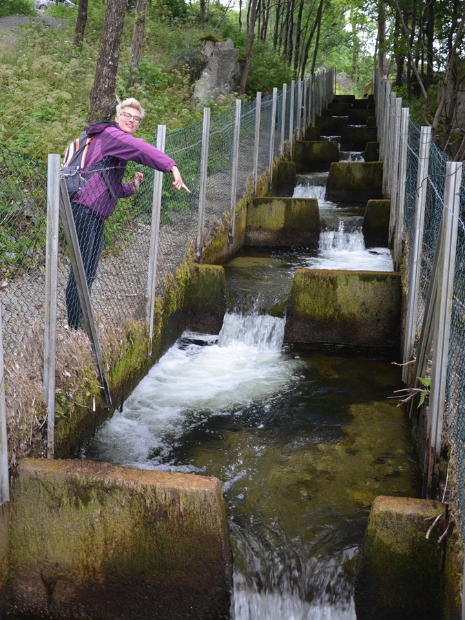 Abstecher nach Tengs: Die Lachstreppe am Fotlandsfossen steht voll mit Fisch |
