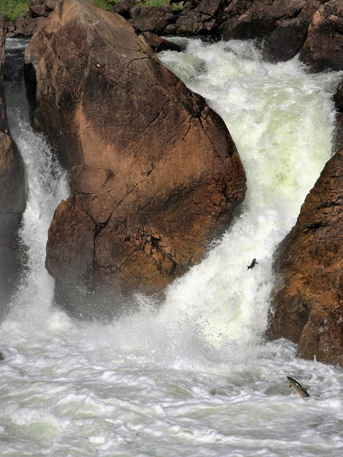 springende Lachse und der landschaftlich womöglich schönste Lachsfluss