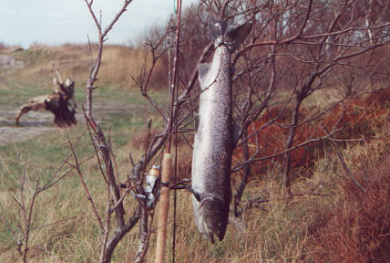 dass er in den letzten beiden Tagen 8 Meerforellen gefangen hat. Mit Netz