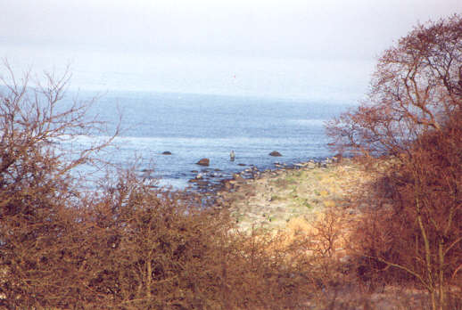| 8.Tag: Ostermontag. Die Familie möchte (auf meinen Vorschlag :-) am Strand von Duodde bis Snogebaek wandern, Sonne tanken etc. Das sind gute 6 Kilometer, so habe ich von 12.00 - 18.00 Uhr Zeit, nochmals die Strecke bei Snogebaek (17) durch- zufischen. Wetter ist wie immer, warum erwähne ich es überhaupt noch: Sonne, wolkenlos und wenig Wind aus Südost, also nicht besonders gut zum Fischen. Trotzdem wogt die See so stark, dass es mir gelegentlich die Taschen meiner Watjacke füllz. Den ganzen Nach- mittag habe ich nur einen Biß und einen Nachläufer. Nach dem Abend- brot versuche ich mein Glück noch 'ne Stunde von den Klippen bei Sandvig, es bringt jedoch auch nichts. | ![]() |