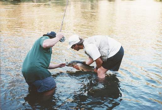 Metolius River in Oregon, Kneippkur mit einem besonderem Bonus: eine schöne Bull Trout, die natürlich wieder zurückgesetzt wurde.